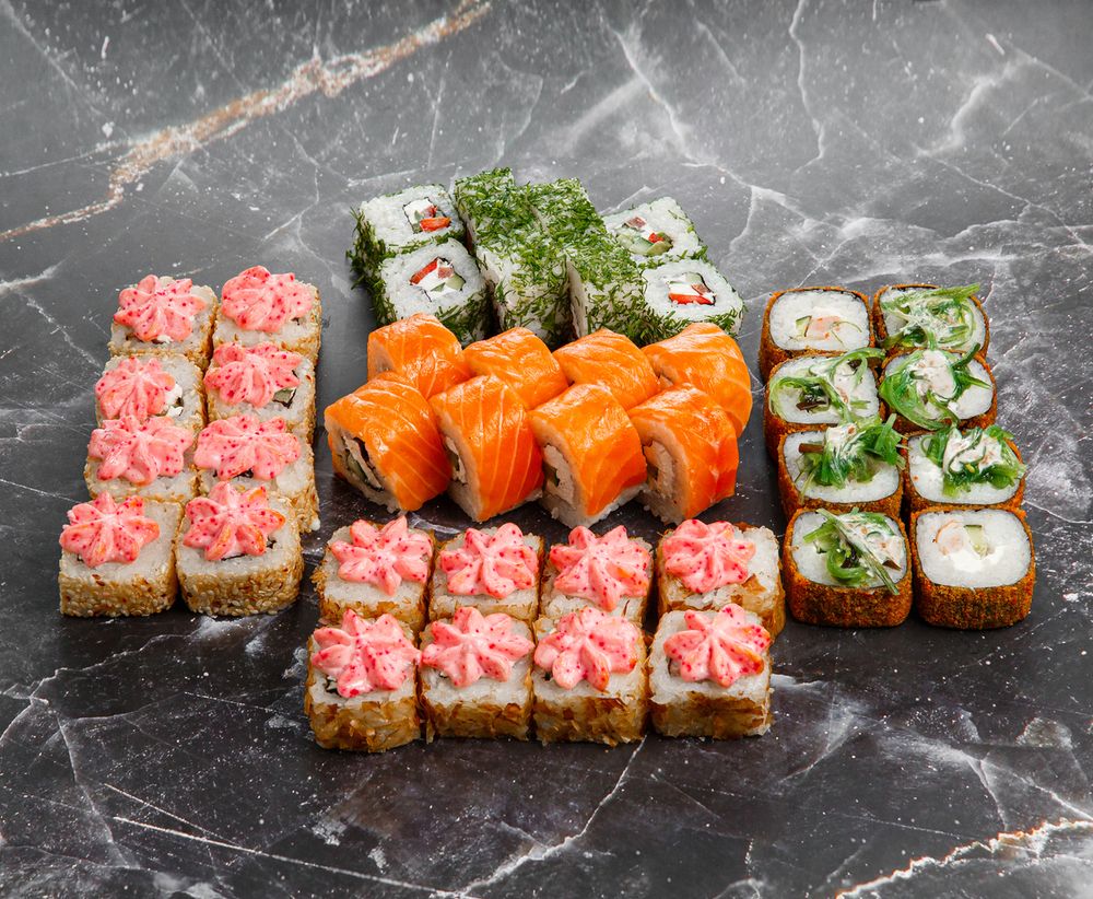 Филадельфия классическая темпура с креветкой Чикин тори Бонито запеченный Веган ролл