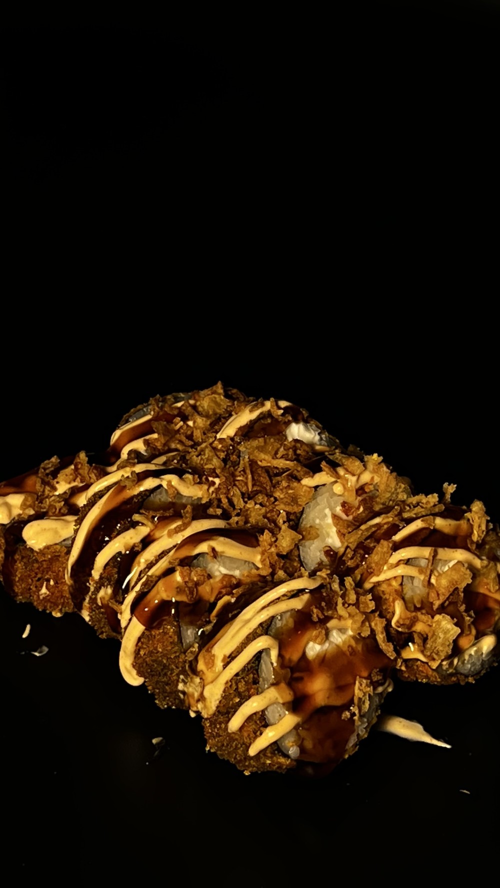Рис,Нори,творожный сыр,курица холодного копчения,огурец,соус Унаги,фирменный соус,жаренный лук