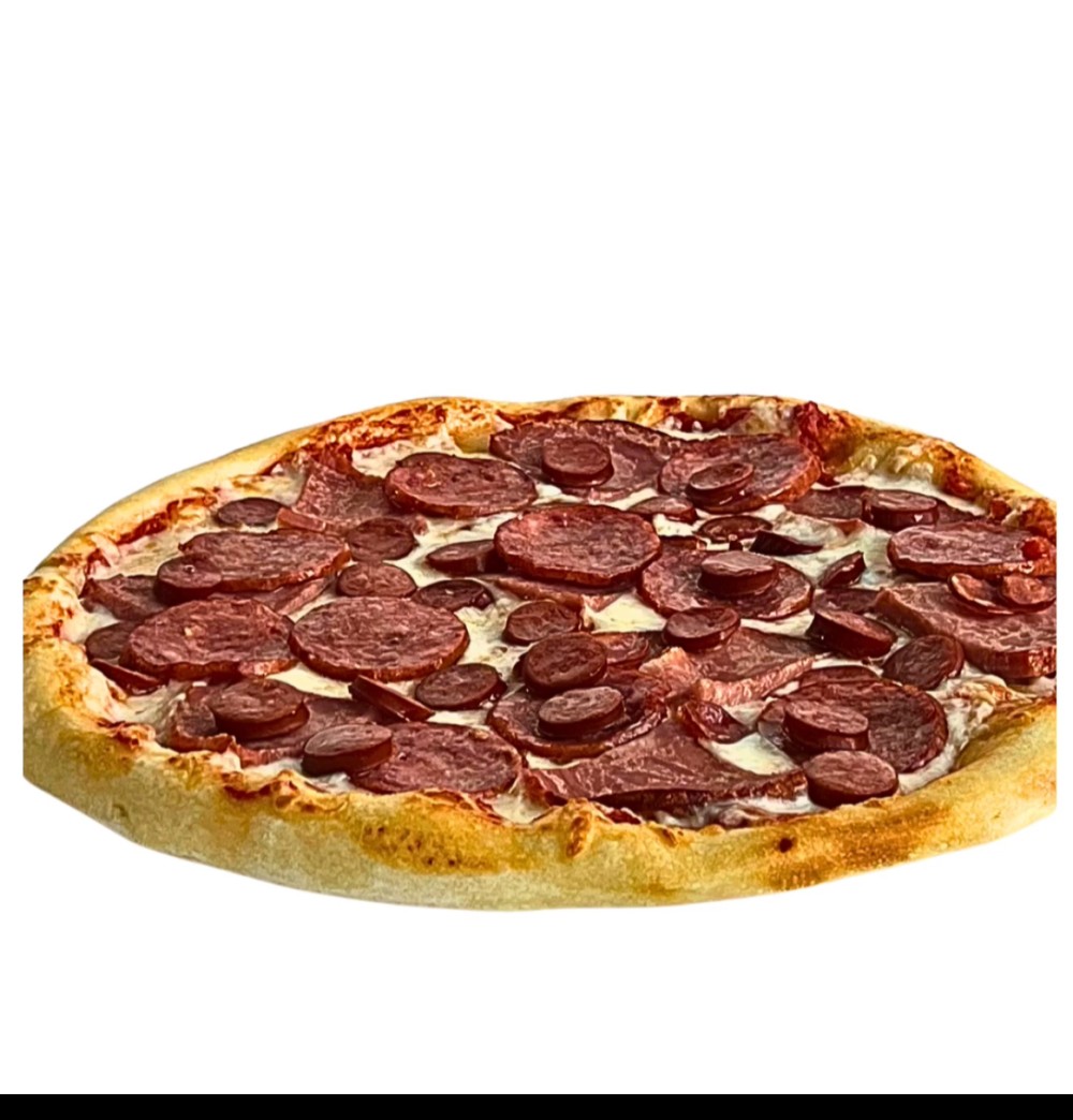 Томатный соус,моцарелла,ветчина,охотничьи колбаски,колбаса